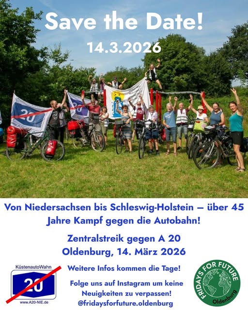 Die FFF-Gruppen kritisieren, dass bereits jetzt alte Bäume gefällt und Lebensräume zerstört werden, obwohl noch gar nicht über den Bau der A 20 entschieden ist, da die Klageverhandlungen noch ausstehen. Die A 20 sei überdies das umwelt- und klimaschädlichste Straßenprojekt Deutschlands und vor dem Hintergrund der bedrohlichen Klimakrise absolut unverantwortlich. Die Autobahntrasse würde nicht nur durch den Mehrverkehr zusätzliche klimaschädliche Gase verursachen. Sie würde auch in großem Umfang das Potenzial der Moorböden, CO2 zu binden, förmlich unter sich begraben. Die eindeutige Botschaft von Kira, Stefan und Ole: „Naturschutz statt Autowahn“, „Wald statt Asphalt“ und „Klimagerechtigkeit statt Autobahnen“.